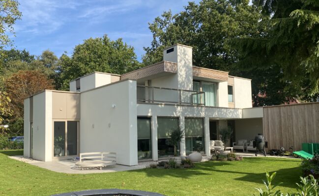 En dan komt er een nieuwe eigenaar die hier misschien lak aan heeft en klakkeloos de aanwijzingen van de makelaarstekening volgt. Het zal toch niet gebeuren? We zullen het niet weten, omdat de binnenkant voor de buitenstaander gesloten blijft. Maar mijn angst werd gevoed toen de busjes van de stukadoor voor de deur stonden. Ik durfde lange tijd niet meer te kijken. Maar de schrijversplicht van de columnist roept en ik ben er langs gegaan. Tot mijn grote opluchting heeft de nieuwe eigenaar slechts het metselwerk met stucwerk vlakgepoetst en het houtwerk van een nieuwe kleur voorzien. En nu blijkt dat de vormgeving van het oorspronkelijke ontwerp dermate sterk was dat de veranderende gevelafwerking geen afbreuk doet. Klasse van Jan Kleinjan. En hulde aan de nieuwe eigenaar.