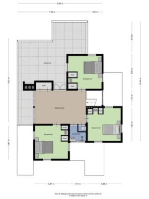 Nou was Kleinjan, die ook het masterplan van het UMCG maakte, een meester in maatvoering. Voor dit huis gebruikte hij een vaste moduulmaat. Alle verblijfsruimten zijn konsekwent opgebouwd uit rechthoeken ter grootte van deze moduulmaat, of een veelvoud ervan. De plaatsing van deze units leverde een boeiende ruimtelijke ontwikkeling op. Zie de prachtige plattegronden en foto’s van het oorspronkelijke interieur op mijn site. Het interieur ademde de strengheid van de ontwerper. Alles, tot aan de wandcontactdozen, de armaturen en de wc-rol houder, was vastgelegd en ingepast in het stramien. Buiten zie je die maatvoering terug. De volumes van metselwerk en glas zijn gewoon een verticale weergave van de plattegrond.