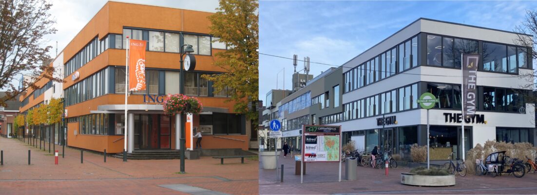 Al jaren staat er aan het Raadhuisplein /hoek Rijksstraatweg een lang, saai gebouw. Vroeger herkenbaar door de ING-bank op de kop, maar die is er al een poosje uit. Nieuwe gebruikers, met eigentijdse ideeën, zorgen ervoor dat het gebouw bijna constant wordt bestookt door aannemers en schilders. Die doen precies wat de gebruikers vragen: grotere ramen, andere kleuren, etc. Maar wordt hier wel getoetst aan de overal-in-Nederland-geldende-welstandsregels? Nee, hier zijn cowboys de baas.
